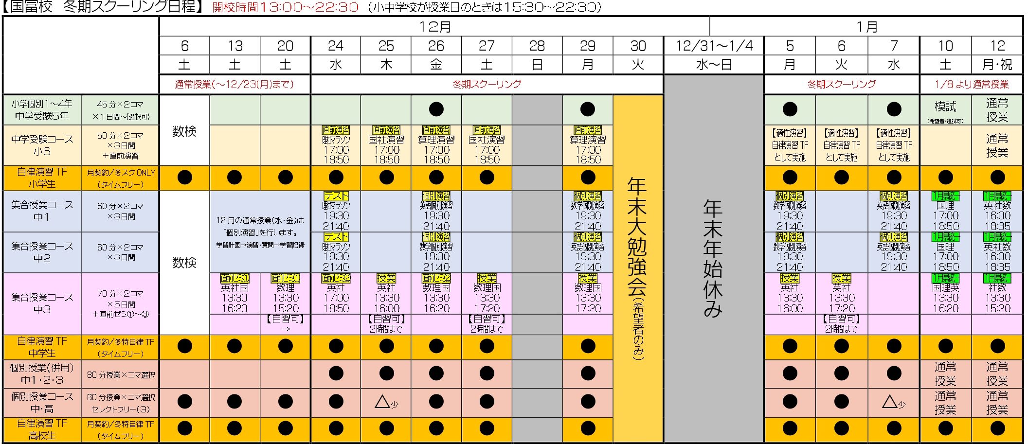 📗冬スク期間限定「冬特自律TF」あり(12/24~1/7)