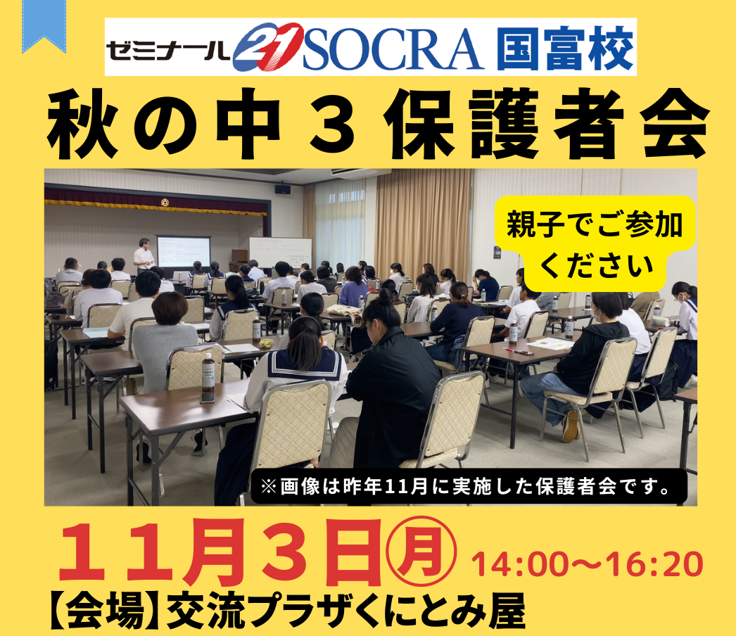 『秋の中3保護者会』のご案内(11月3日開催)★内部生向け★
