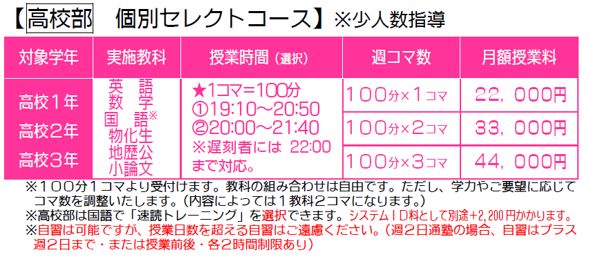高校個別セレクトコース 授業料