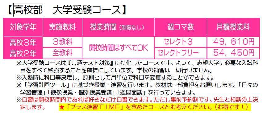 大学受験コース 授業料